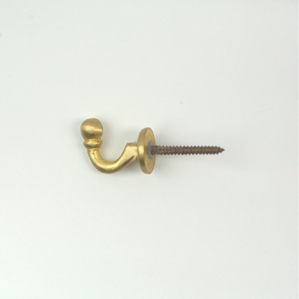 Wall hook for curtain tie backs. Height: 2,3 cm Loop diameter: 1 cm Colour: GOLD