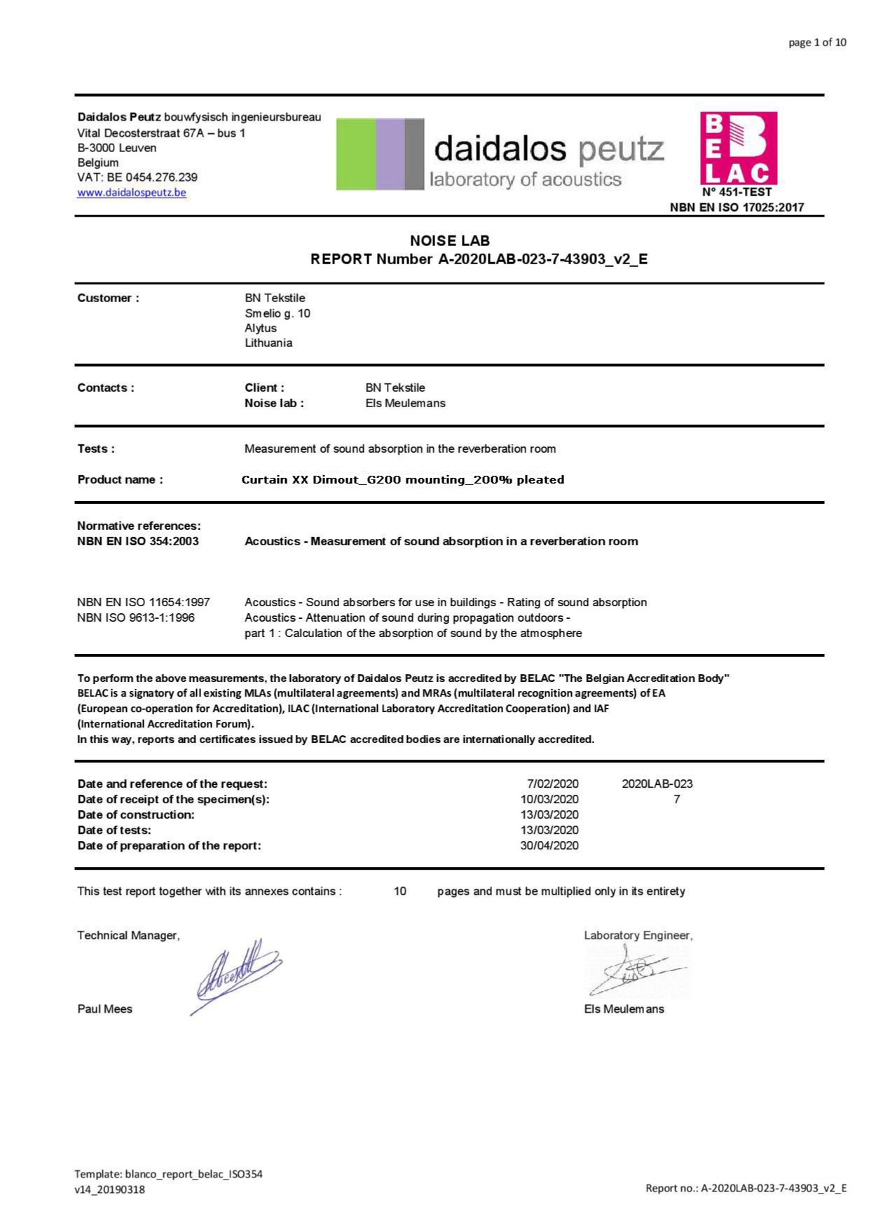 Acoustic certificate