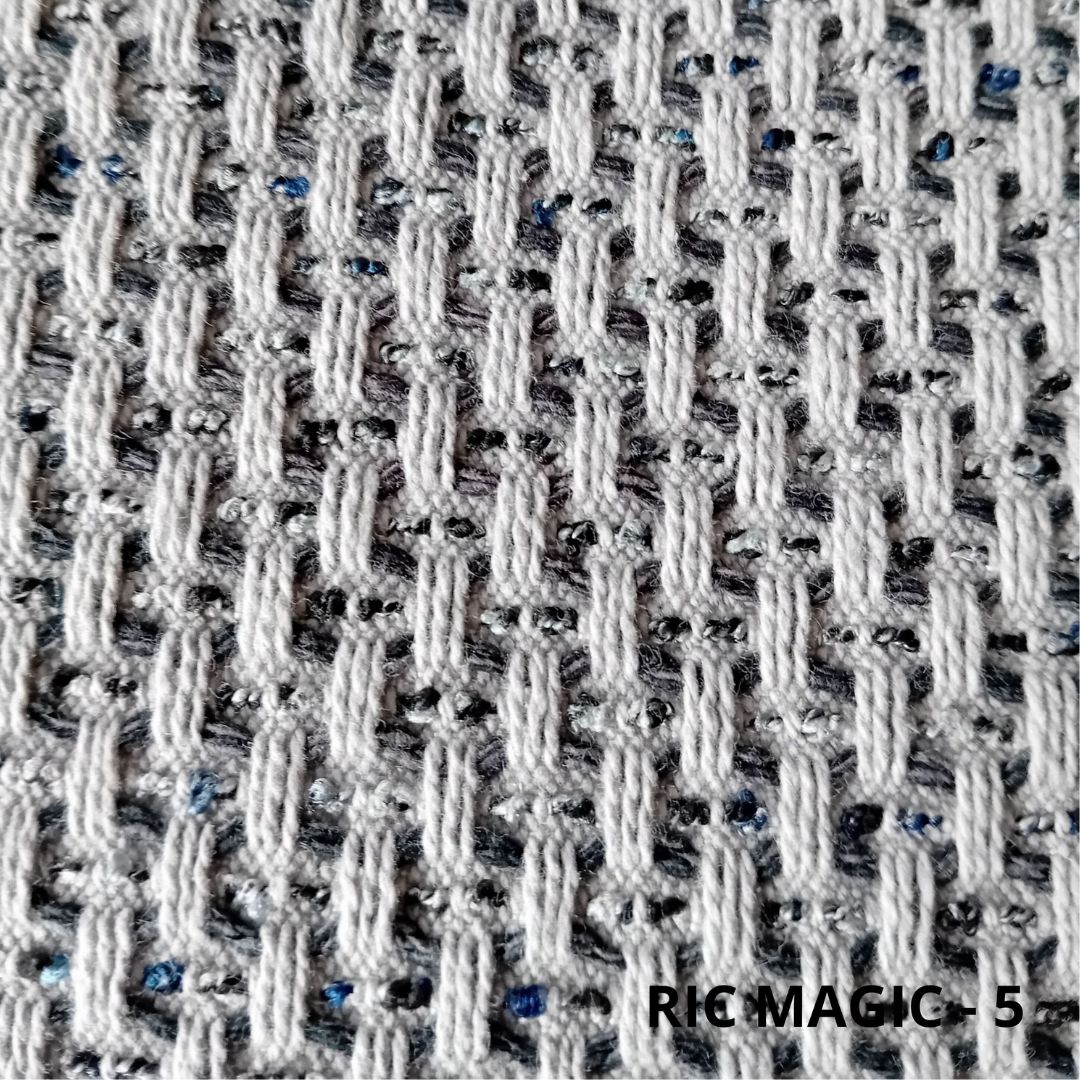 Fabric with natural fibres suitable for bedspreads, throws, cushions. Code: RIC MAGIC Width: ↔138 cm Composition: 83% CO, 17% PES Washable at 30 degrees Recommended for dry cleaning