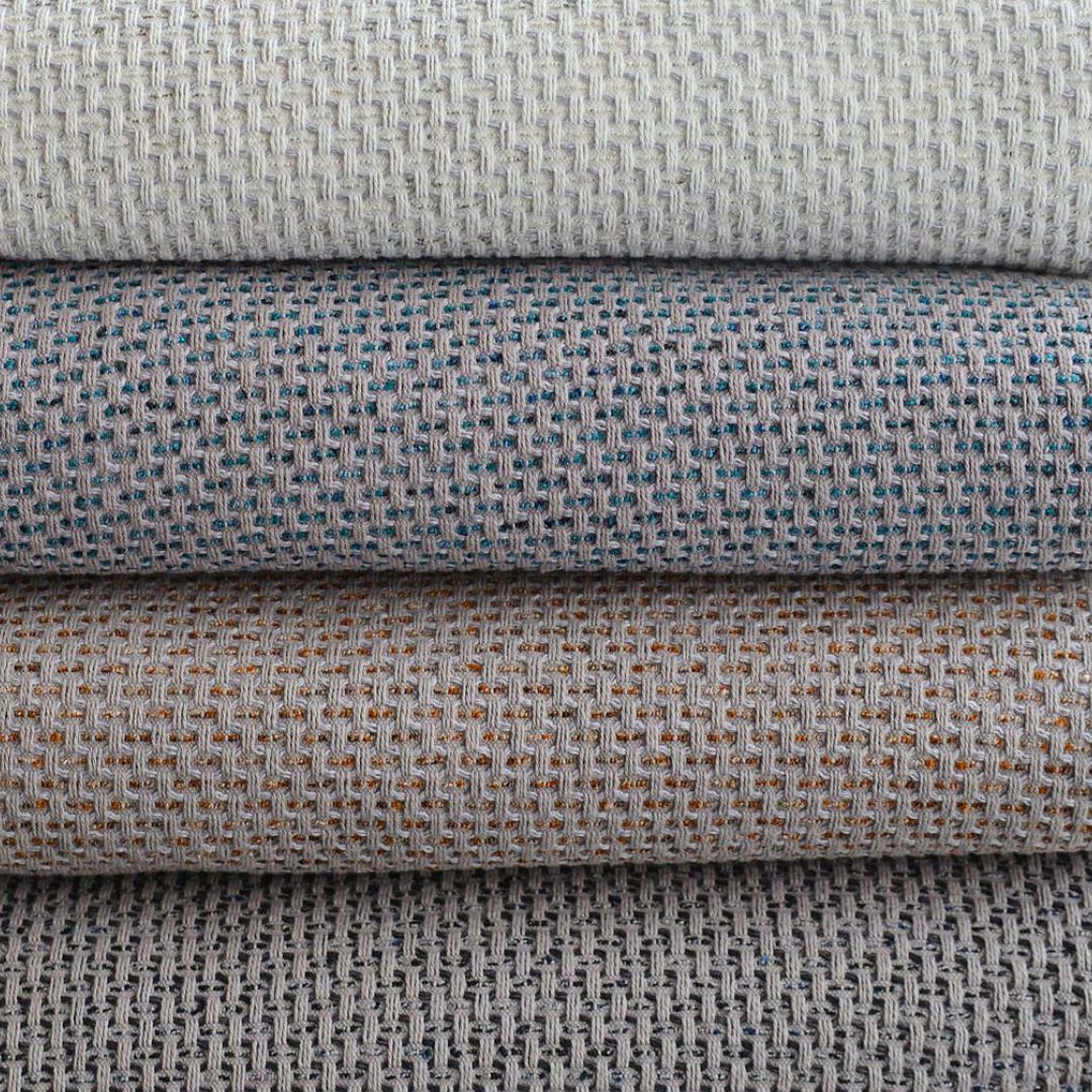 Fabric with natural fibres suitable for bedspreads, throws, cushions.