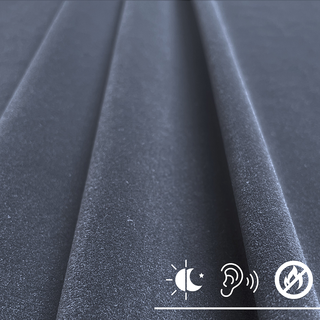 Code: SHEN SL Width: ↔280 cm Composition: 100 % PES; Weight: 420 g/m2 Martindale test: > 200 000 cycles Sound absorption class: C (0,7) Non-flammability certificate