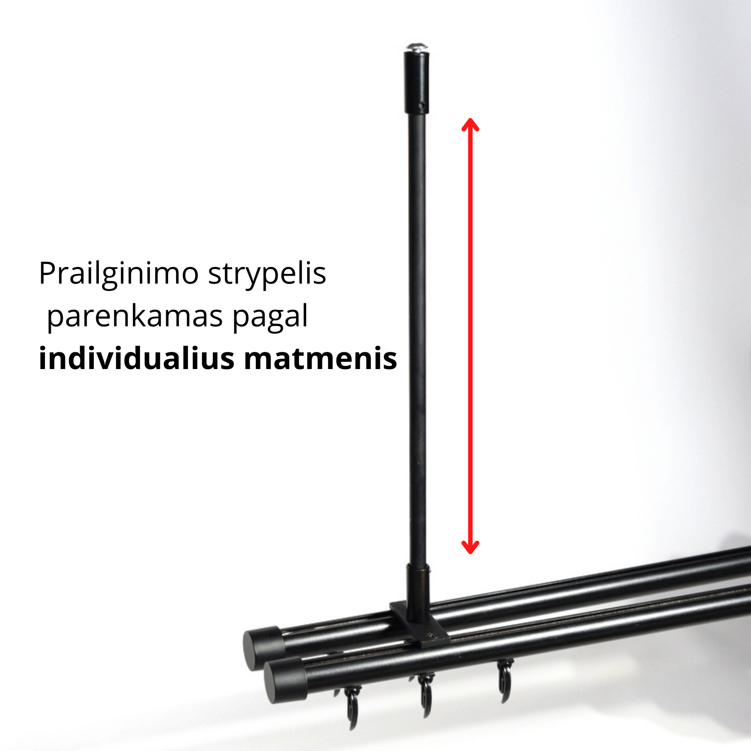 MDR bėgelį galima nuleisti nuo lubų pagal individualius išmatavimus.
