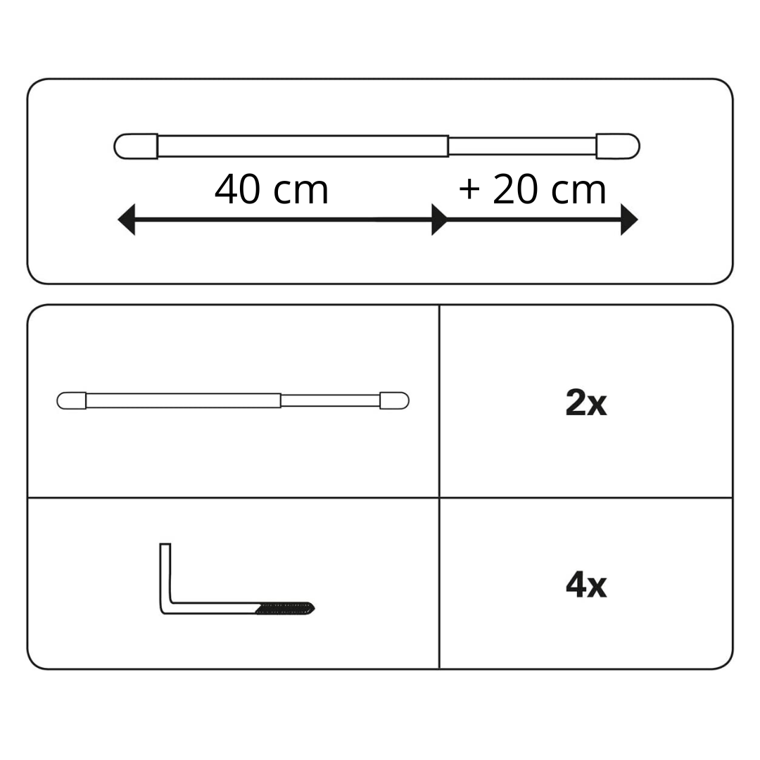 Karnizo ilgis reguliuojamas nuo 40 iki 60 cm.