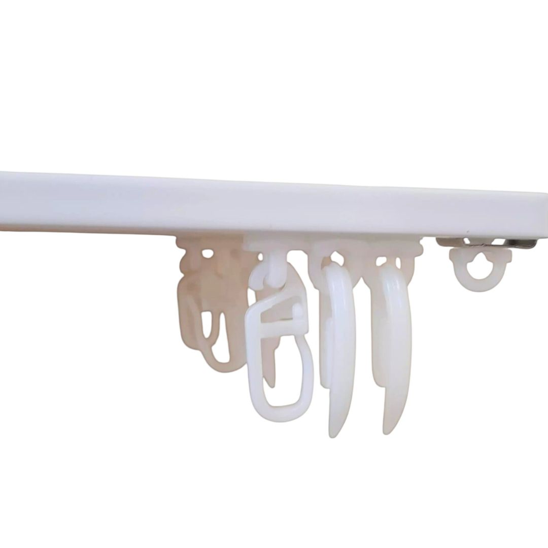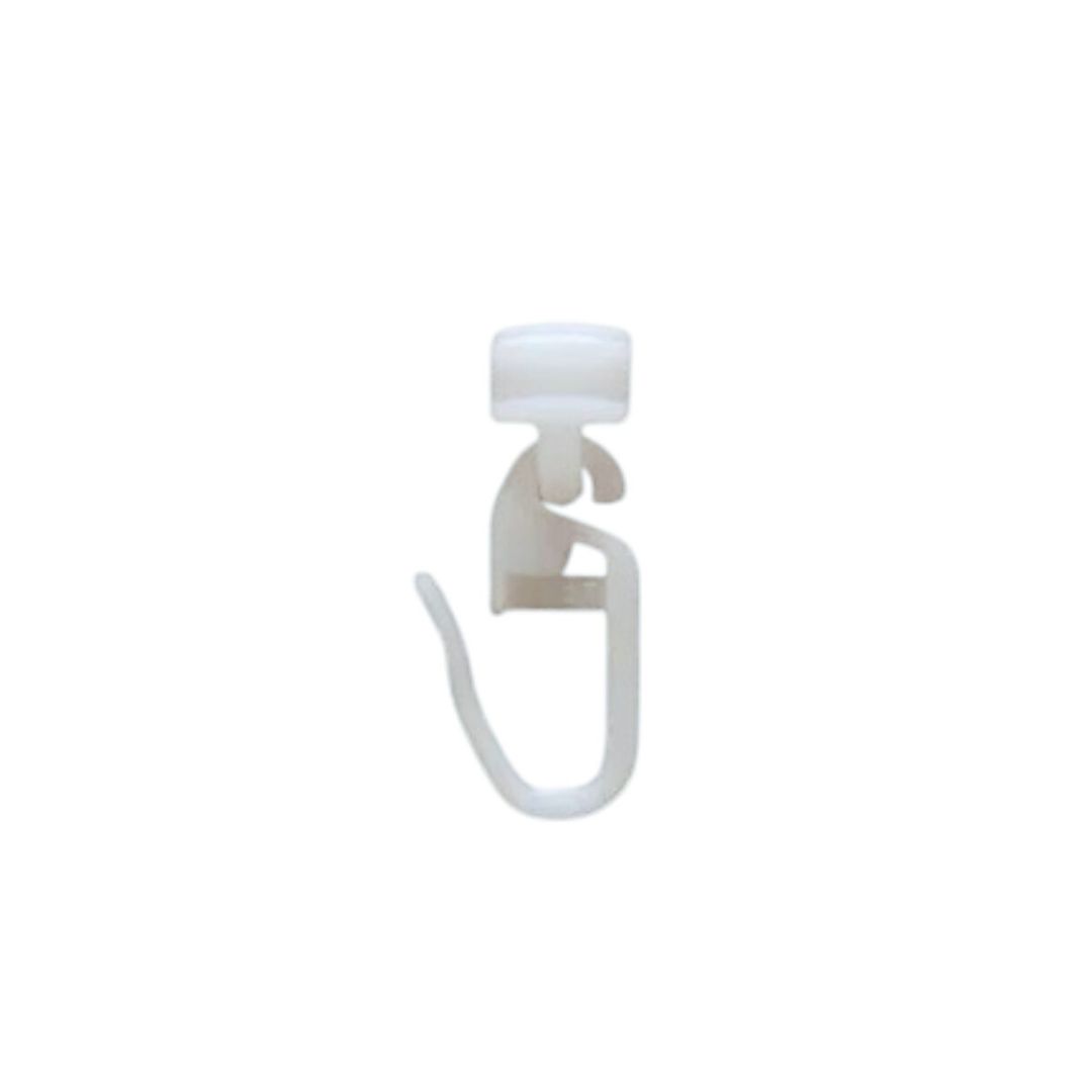 Lubinis užuolaidų kabliukas, skirtas karnizų lazdoms su grioveliu arba bėginėms sistemoms.