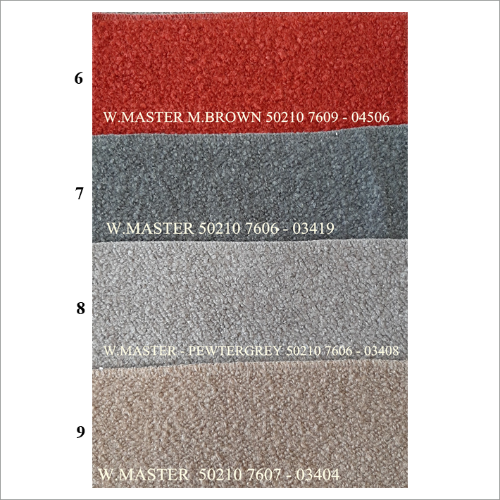 Audiniai su natūraliu pluoštu tinkami baldams, lovatiesėms, pledams… Kodas: W. MASTER Plotis: ↔140 cm Sudėtis: 38% CO, 32% WO, 25% CV, 5% PA Svoris: 833 g/m² Martindeilo testas / Dilimas: 40000 ciklų